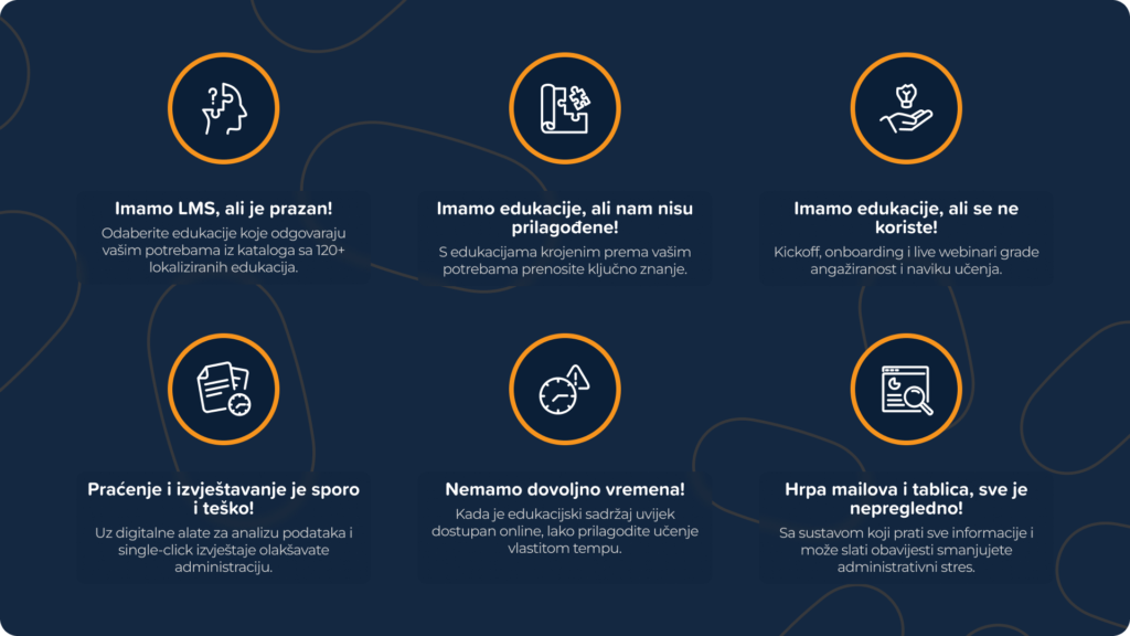 Kroz istraživanja tržišta na temu edukacija i razvoja te razgovore s našim klijentima, kontinuirano se pojavljuju isti problemi.